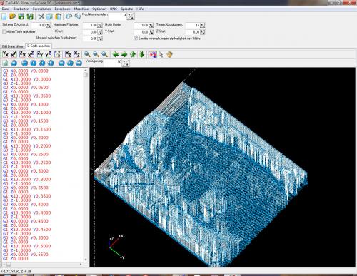 Sie müssen nur die Bild Datei anklicken. Sie bekommen dann den G-Code und eine grafische Darstellung (Plot) des G-Codes. Sie können dann den G-Code abspeichern oder noch nachbearbeiten.