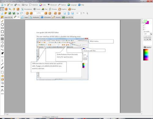 Potete modificare la dimensione delle pagine o spostarne il contenuto. Aggiungete timbri come "Riservato" o "Top secret". Il codice sorgente della pagina (un linguaggio simile all'HTML) è revisionabile. Usate il programma per leggere e scrivere file pdf criptati.